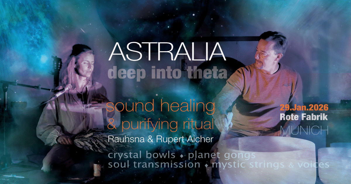 29. January 2026 ASTRALIA Sound Healing & Purifying Ritual Are you ready to experience a complete reset and tune into powerful healing frequencies at the start of the new year? Give your autonomic nervous system the unique opportunity to resonate with transformative sounds and embark on an inner journey of wholeness. In the pure vibrations of Rupert's crystal sound bowls and planetar gongs, his mystical playing and Rauhsna’s Soul-Sound-Channeling ✨ WHEN: Thursday, January 29, 2025 6:30 PM: Doors open ✨ WHERE: Rote Fabrik, Brunhamstraße 19 A, 81249 Munich